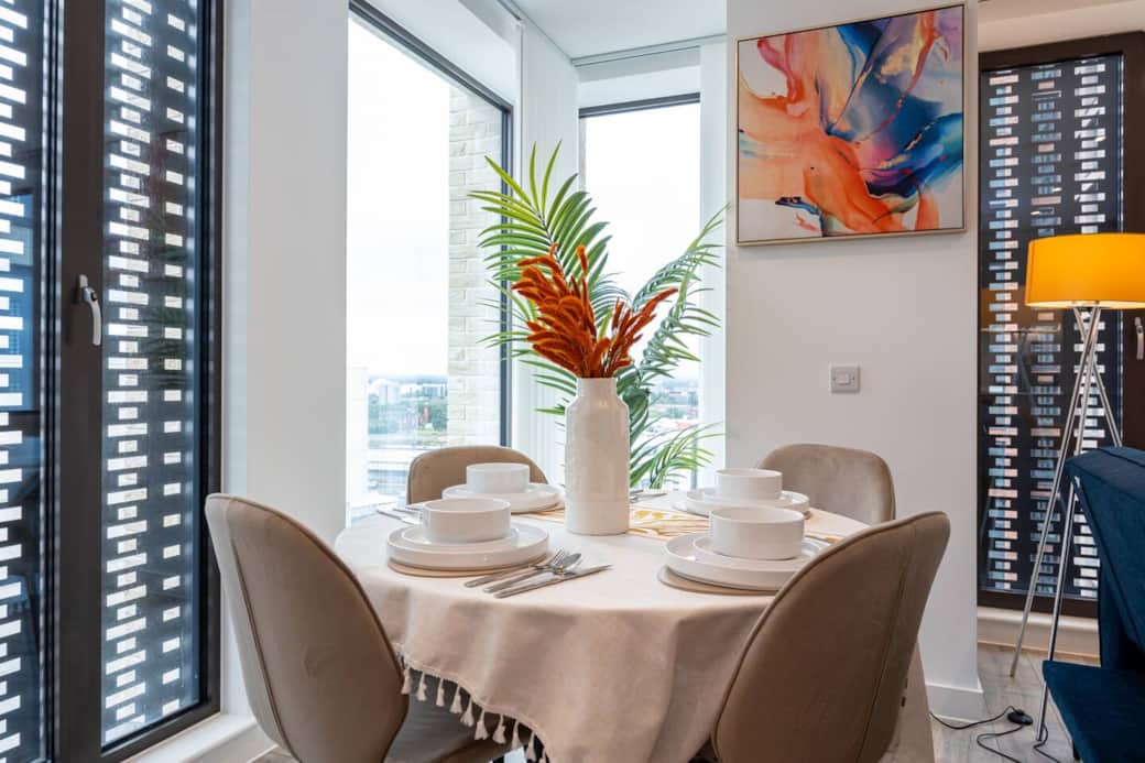 Discover the comfort of our pet-friendly 2-bedroom rental at Smithstone Property, perfectly situated near the station for easy city access. Perfect for 5 guests to enjoy a prime location with easy and exceptional view from the 13th Floor access to iconic landmarks Etihad Stadium & Manchester Regional Arena